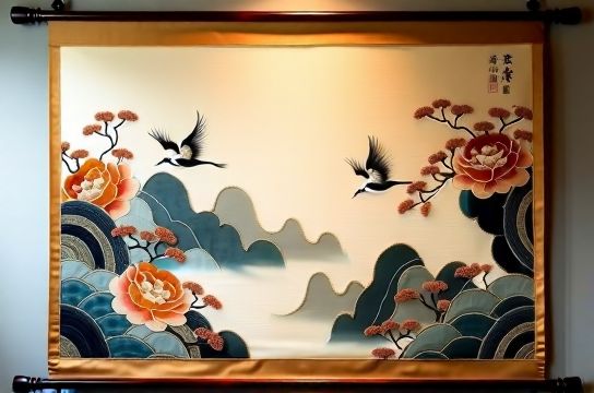 Oriental Aesthetic Wall Hangings Using Traditional Embroidery and Silk Blends