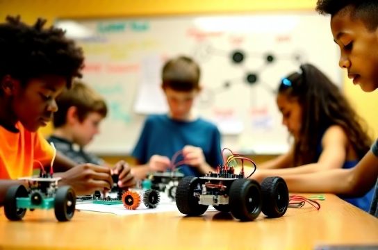 | LEGO SPIKE Prime | 10–16 | Block-based coding, gear trains, sensor integration | Automated sorting arm, line-following rover | 89% |
